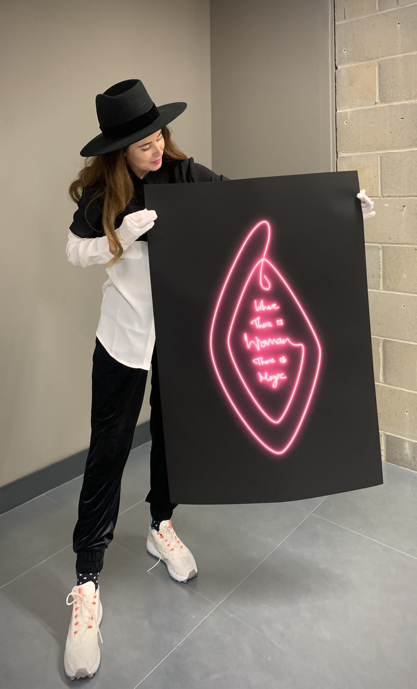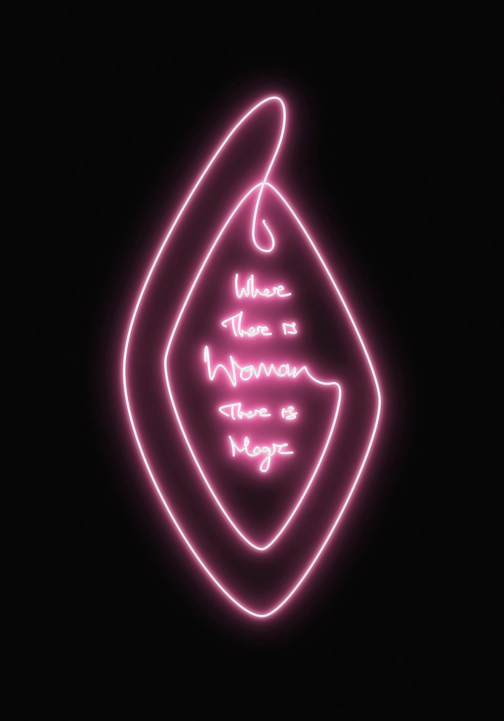 ‘Woman Magic’ is about the mystic wise woman following her intuition. The yoni form also resembles a diamond shape, a portal to life. The free-flowing hand-drawn lines are glowing with life and vitality. Now more than ever we need to acknowledge and embrace powerful female archetypes that can help us reconnect with our planet and within our communities.